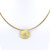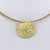Collier mit einem Anhänger aus 585er Gelbgold und einem weißen Topas. Der Anhänger hat einen Durchmesser von 22mm und wurde von Hand gestaltet, die Oberfläche ist plastisch und wirkt dadurch wie ein Relief.